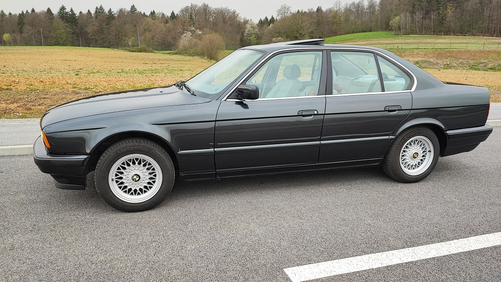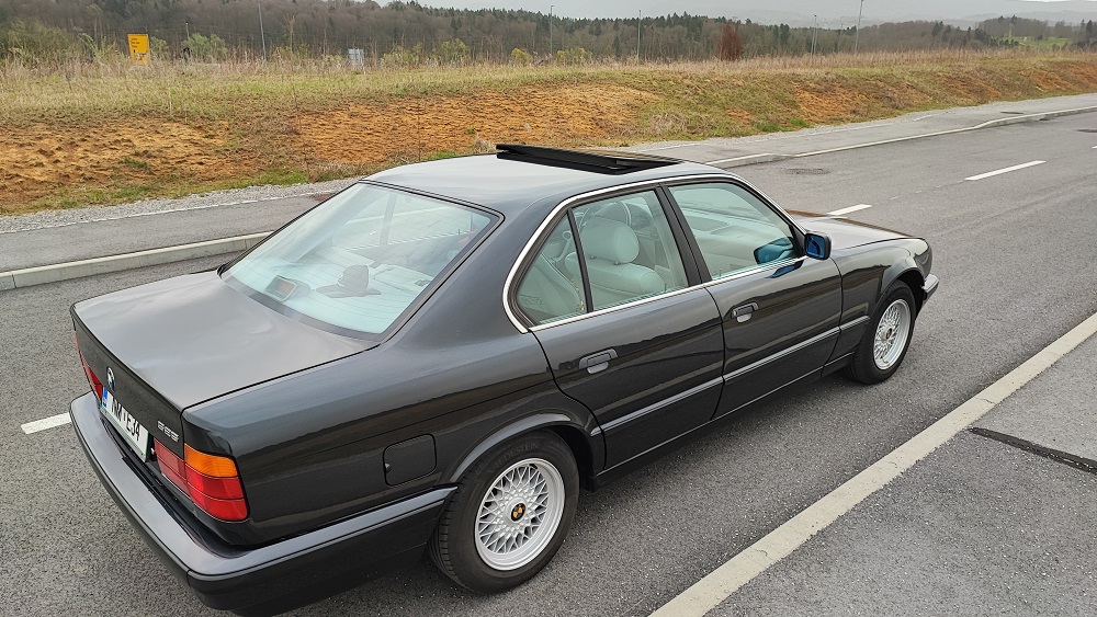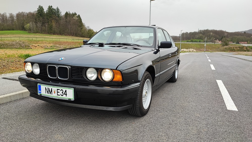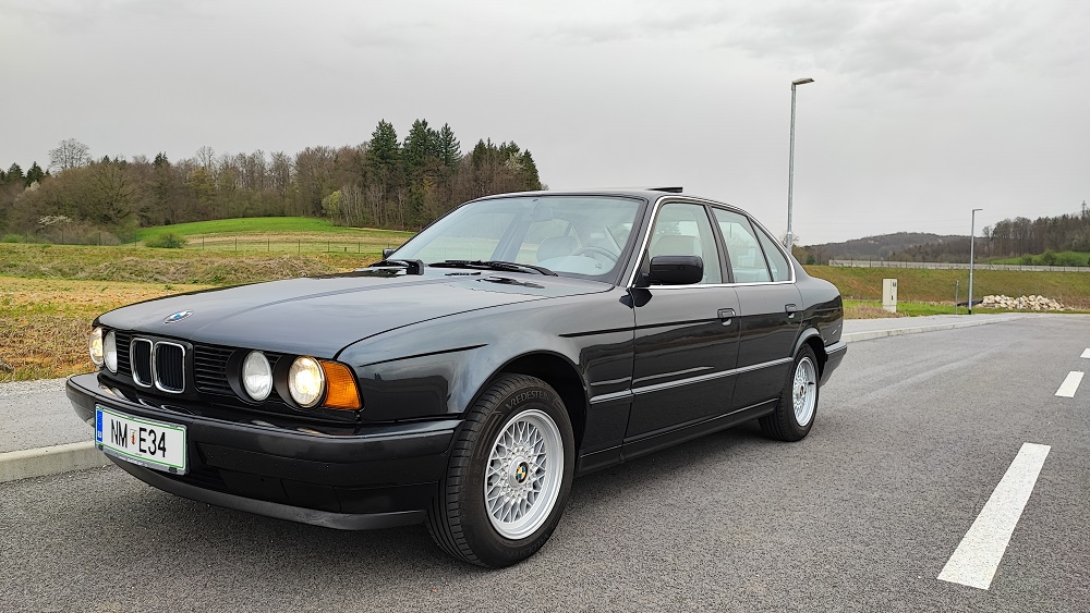 Gre za BMW E34, ki je tretje generacije serije 5. Naveden avto je letnik 1992, se pa je ta linija proizvajala od novembra 1987 do 1996. Vgrajen motor je bencinski, 6 cilindrski vrstni M50B20 z 150 konjskimi močmi. Od opreme ima avto voznikov airbag, ABS, električni pomik prednjih stekel, električno strešno okno, električno nastavljiva zunanja ogledala, centralno zaklepanje, po višini nastavljiv voznikov sedež, sedeži so usnjeni in v belo/svetlo sivi barvi, originalen avtoradio kasetnik Bavaria.