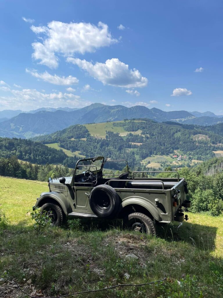 GAZ 69 (registriran za 6 oseb). Cena najema vozila na dan 350€ + 0.50€/km.