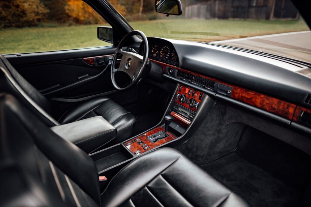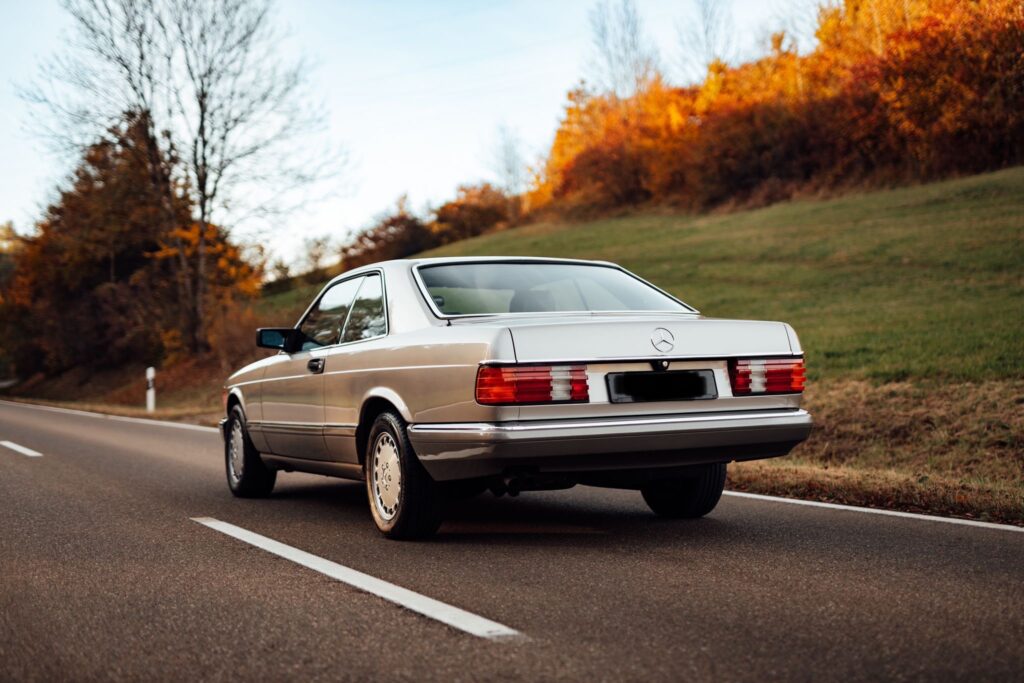 Mercedes Benz 500 SEC navduši z svojo brezčasno obliko ter eleganco. Za pravo izkušnjo vožnje iz 80ih let poskrbi atmosferski 5.0 litrski V8 motor, ki je zlahka kos relativno nizki teži avtomobila.